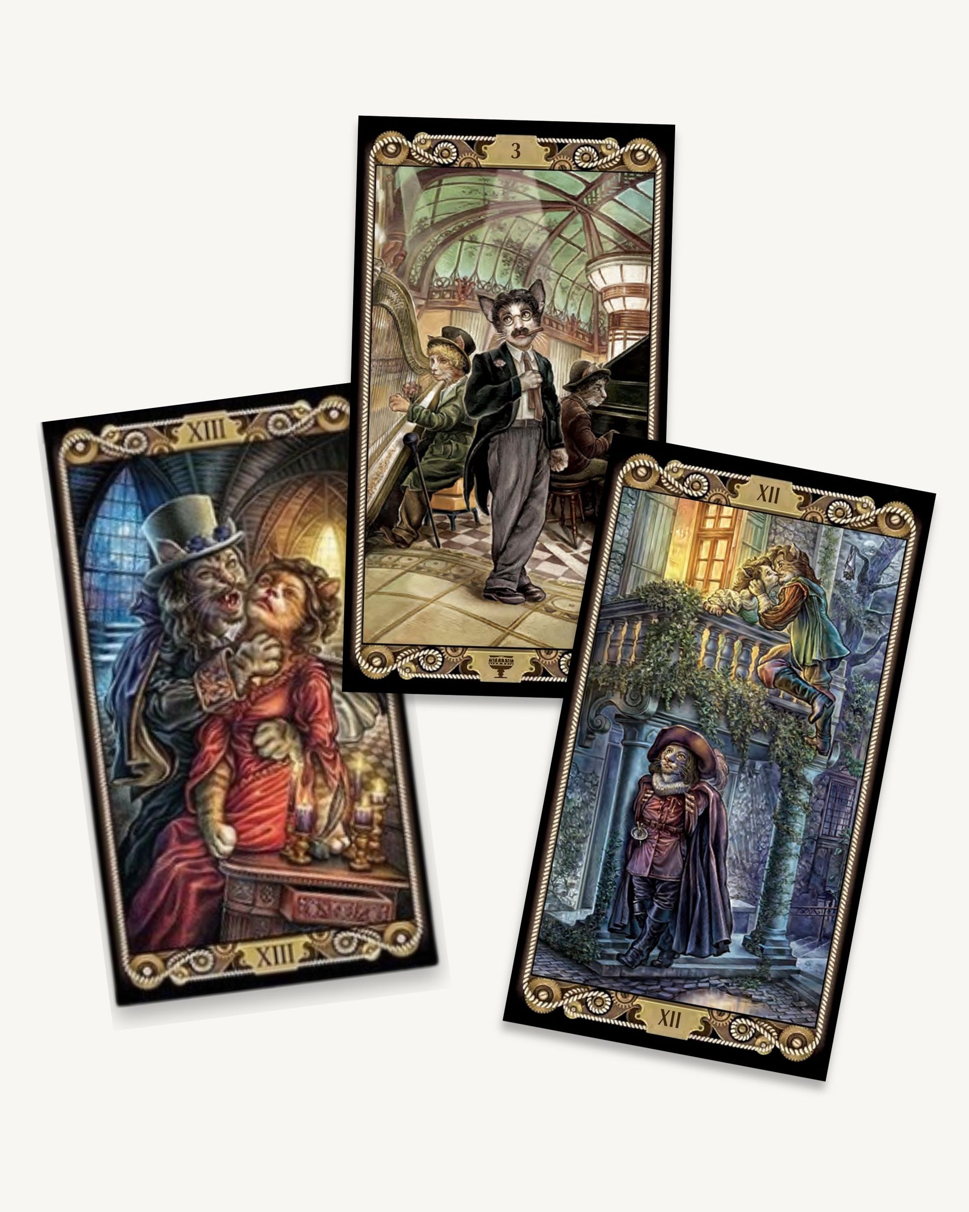 Im CatTarot begegnen dir große Figuren der Geschichte, neu geboren in ihren katzenhaften Gegenstücken: